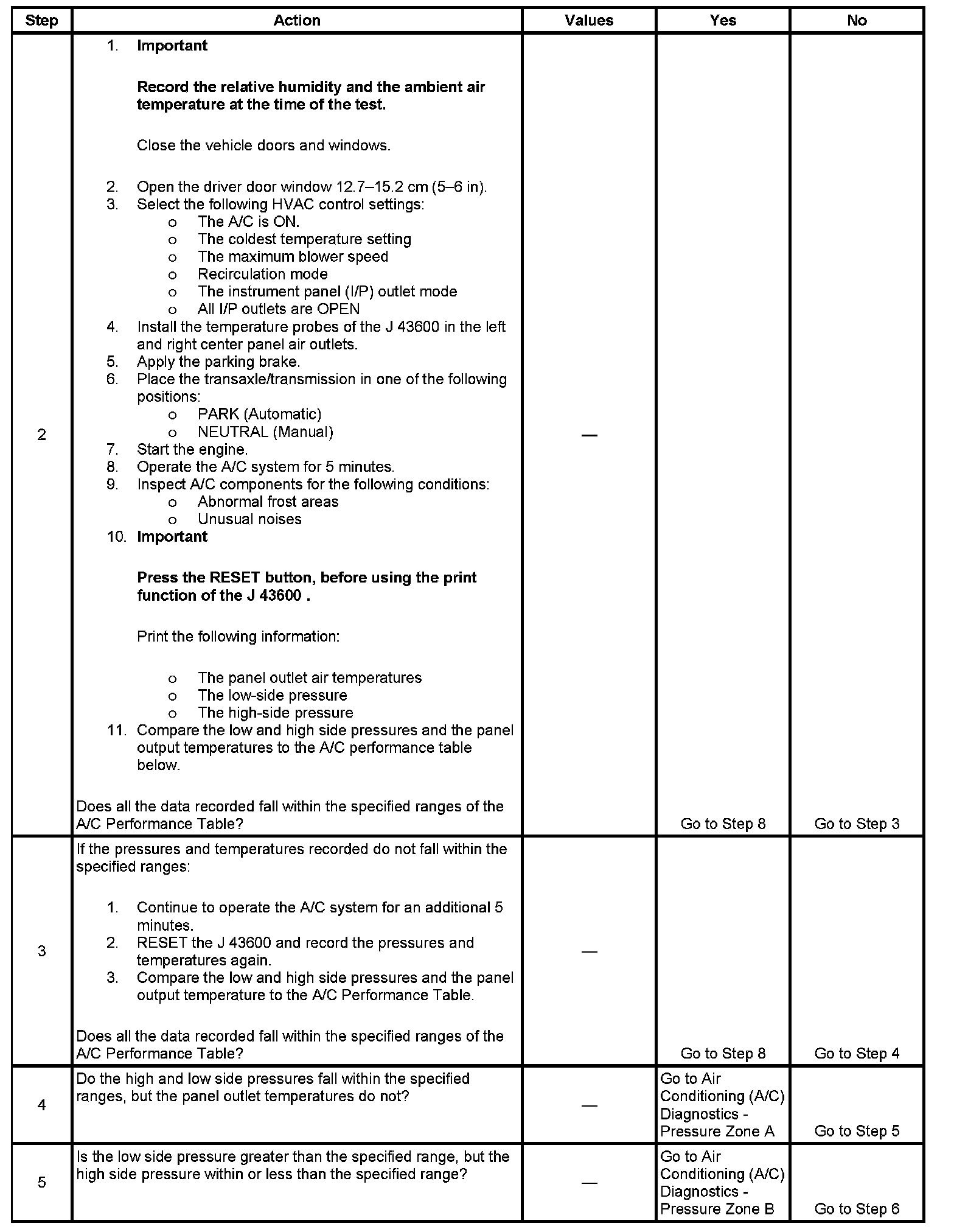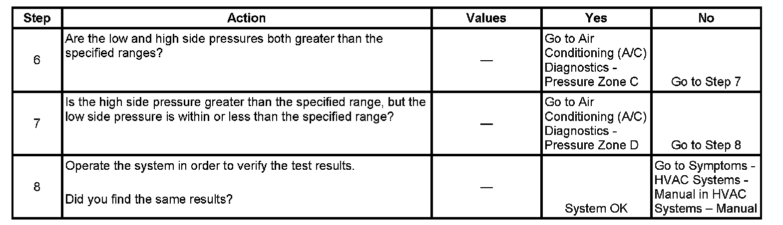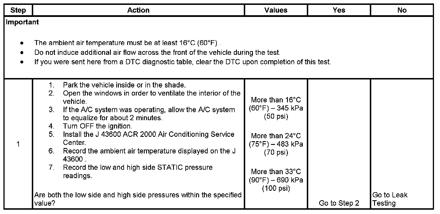 1. This step determines if the A/C system has at least the minimum refrigerant charge required to operate the system without damage.