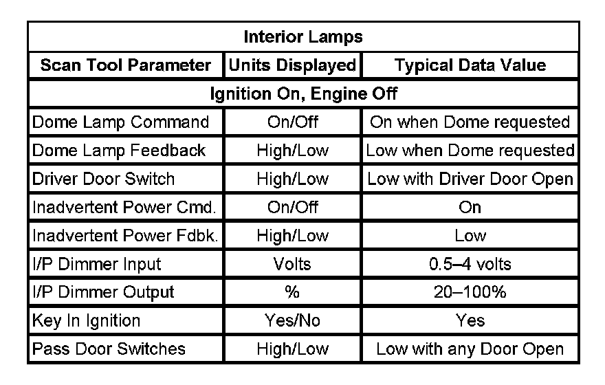 Scan Tool Data List - Interior Lamps