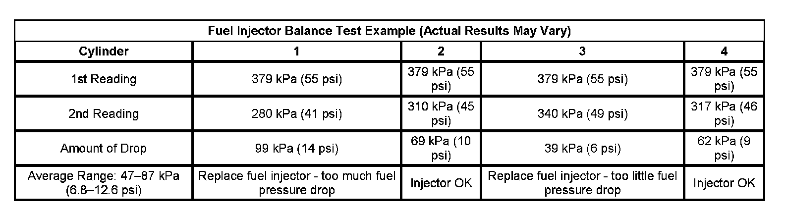Fuel Injector Balance Test Example (Actual Results May Vary):