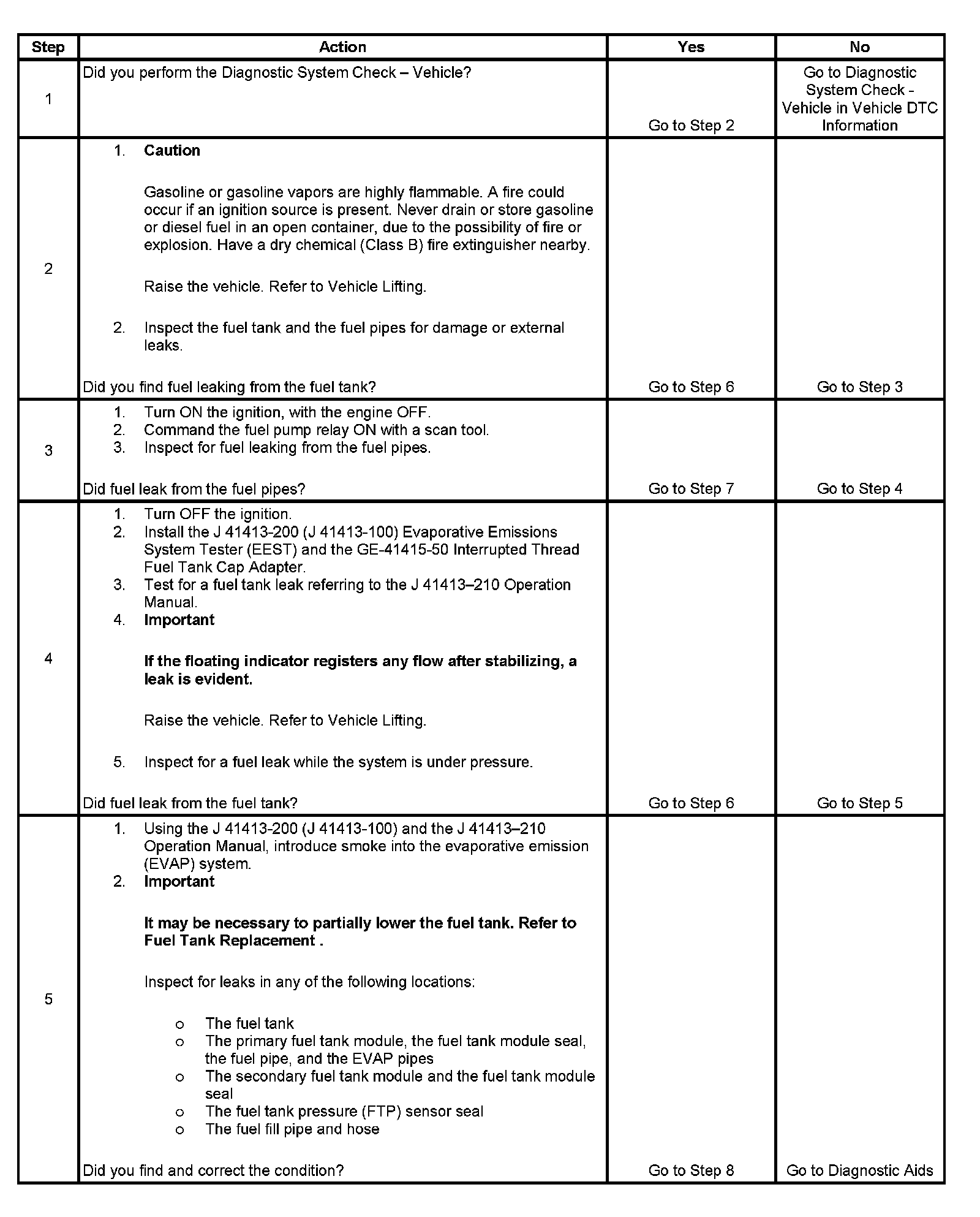 5. This step tests for fuel vapors escaping above the fuel level in the fuel tank.