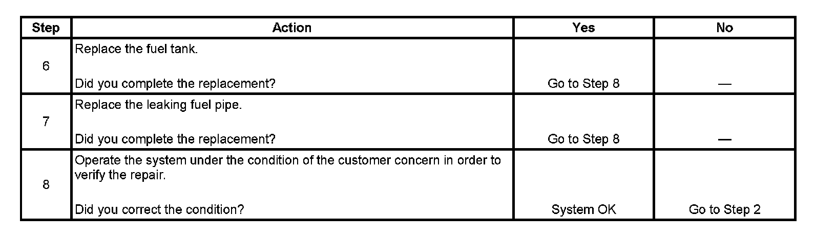 4. This step tests for fuel leaks below the fuel tank fuel level.
