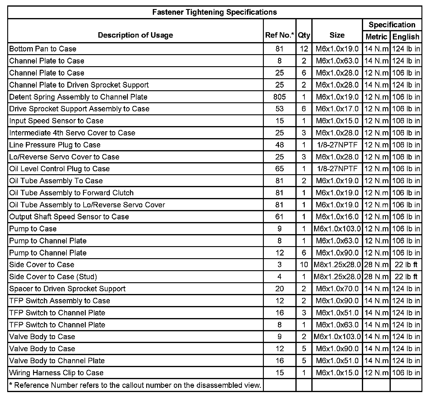 Fastener Tightening Specifications: