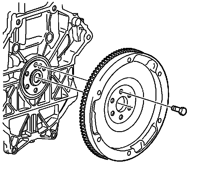 Install the flywheel and the new flywheel-to-crankshaft bolts. Hand start the bolts.