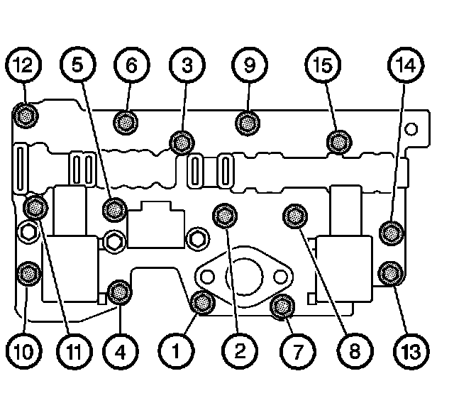 ^ Tighten the 15 black bolts in three separate steps in the sequence shown.