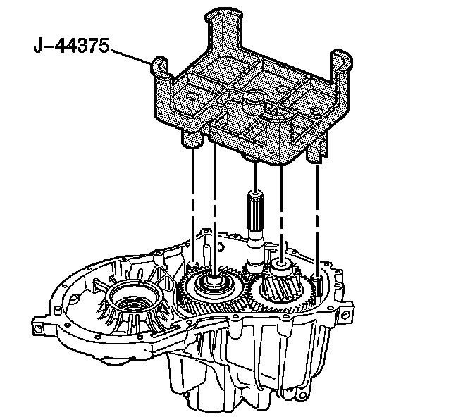 20. Install the housing onto the shift forks and the shafts on to the J 44375. Line up the shift forks and the shafts with the housing.