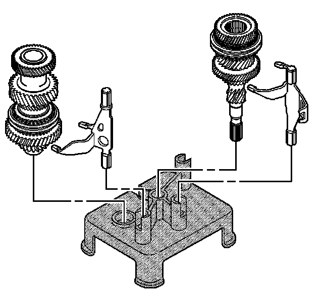 17. Install the shift forks and the input shaft and output shaft onto the J 44375.