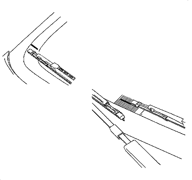1. Position wiper blade assembly at tick mark in lower portion of windshield blackout strip on driver side of vehicle.