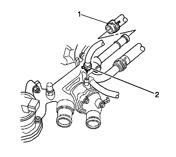 18. Remove the inlet and outlet heater hoses (1, 2).