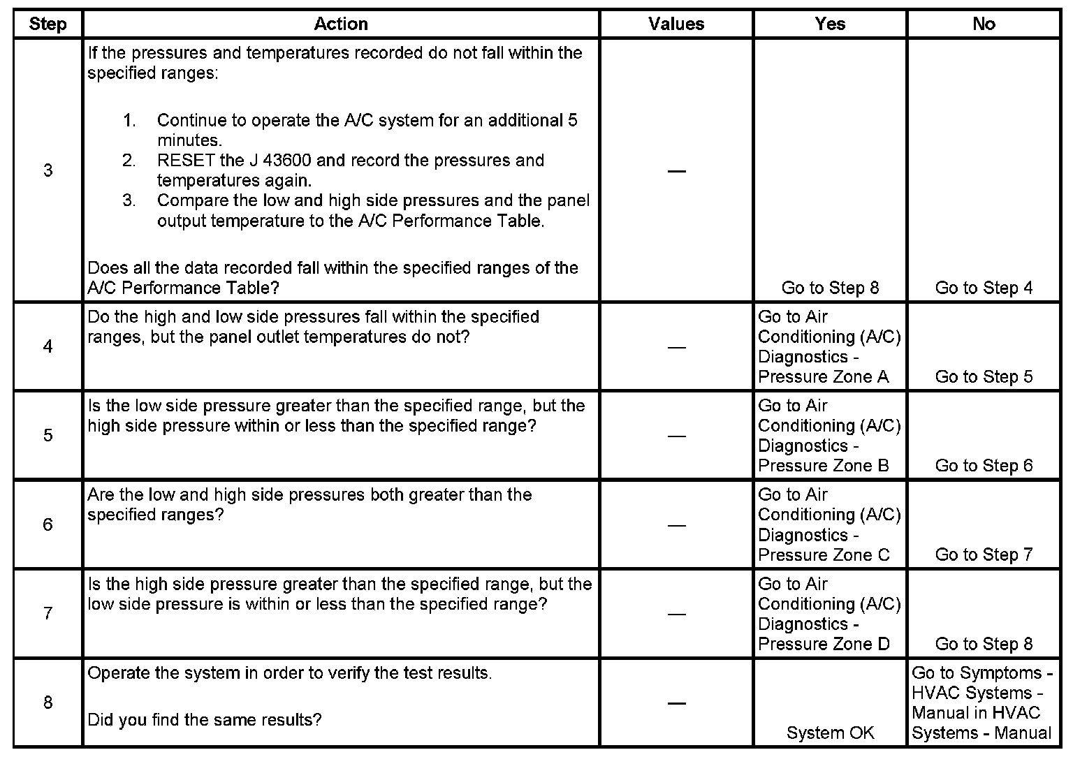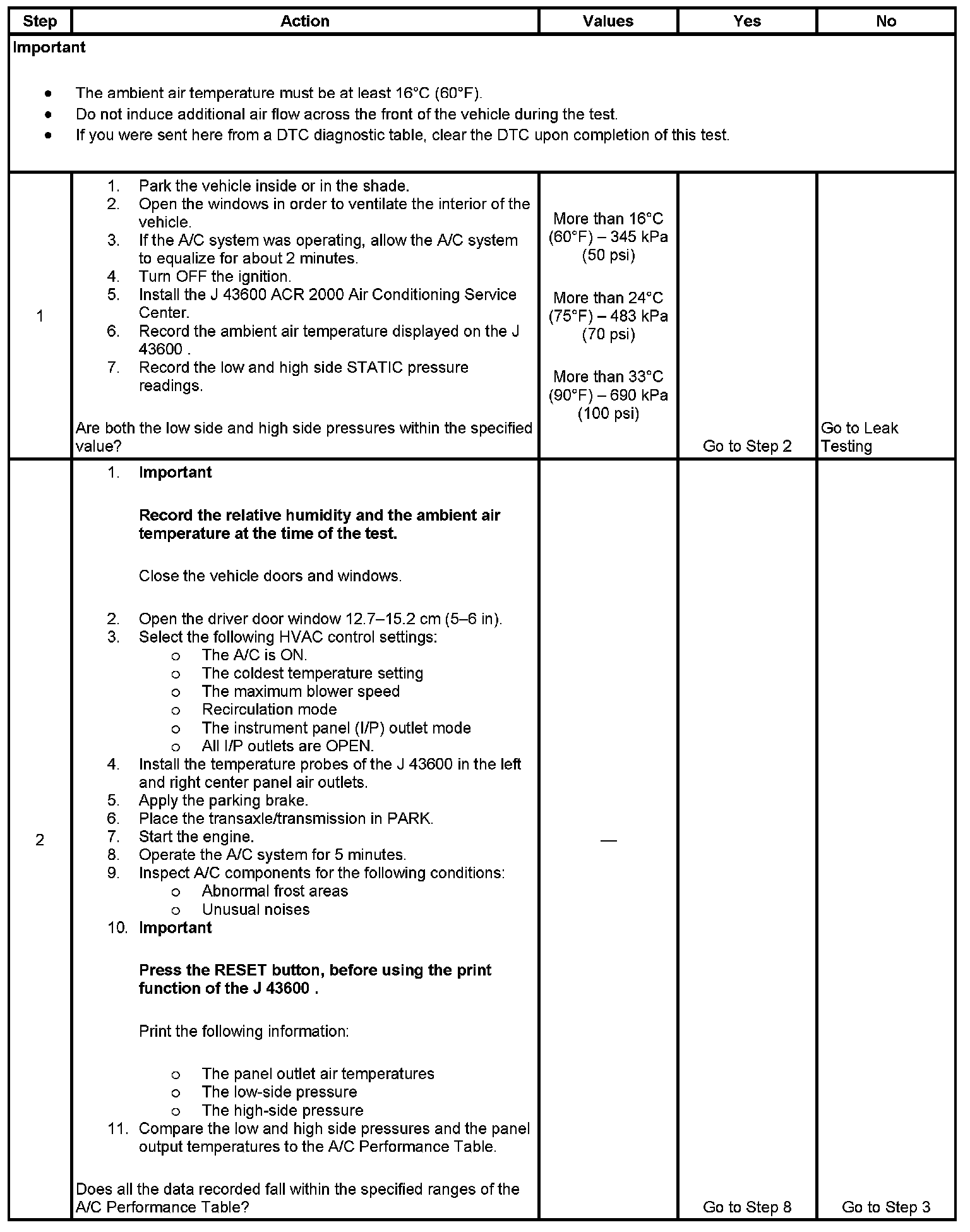 1. This step determines if the A/C system has at least the minimum refrigerant charge required to operate the system without damage.