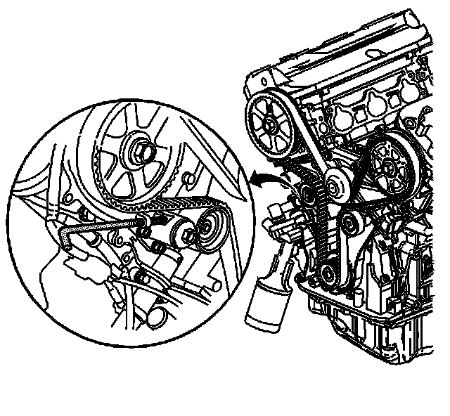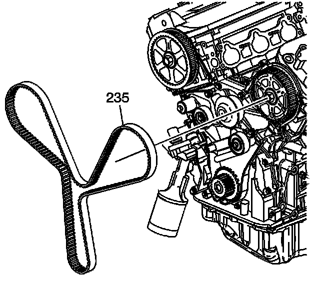 6. Install the belt (235) onto the sprockets. Install the timing belt in a clockwise sequence starting with the tensioner pulley. Refer to Camshaft Timing Belt Alignment Diagram.