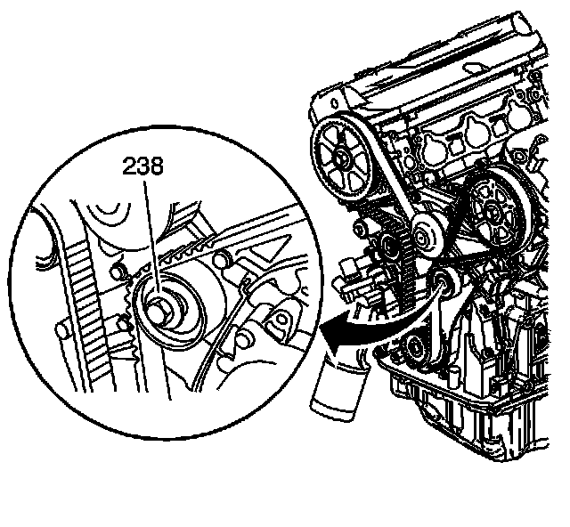 Tighten the idler pulley bolt (238).