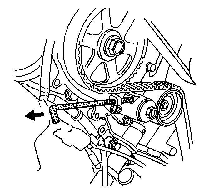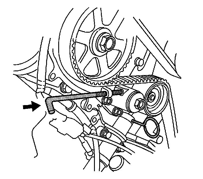 5. Install the EN 46331. Screw the EN 46331 all the way in by hand, until the tool contacts the timing belt tensioner.