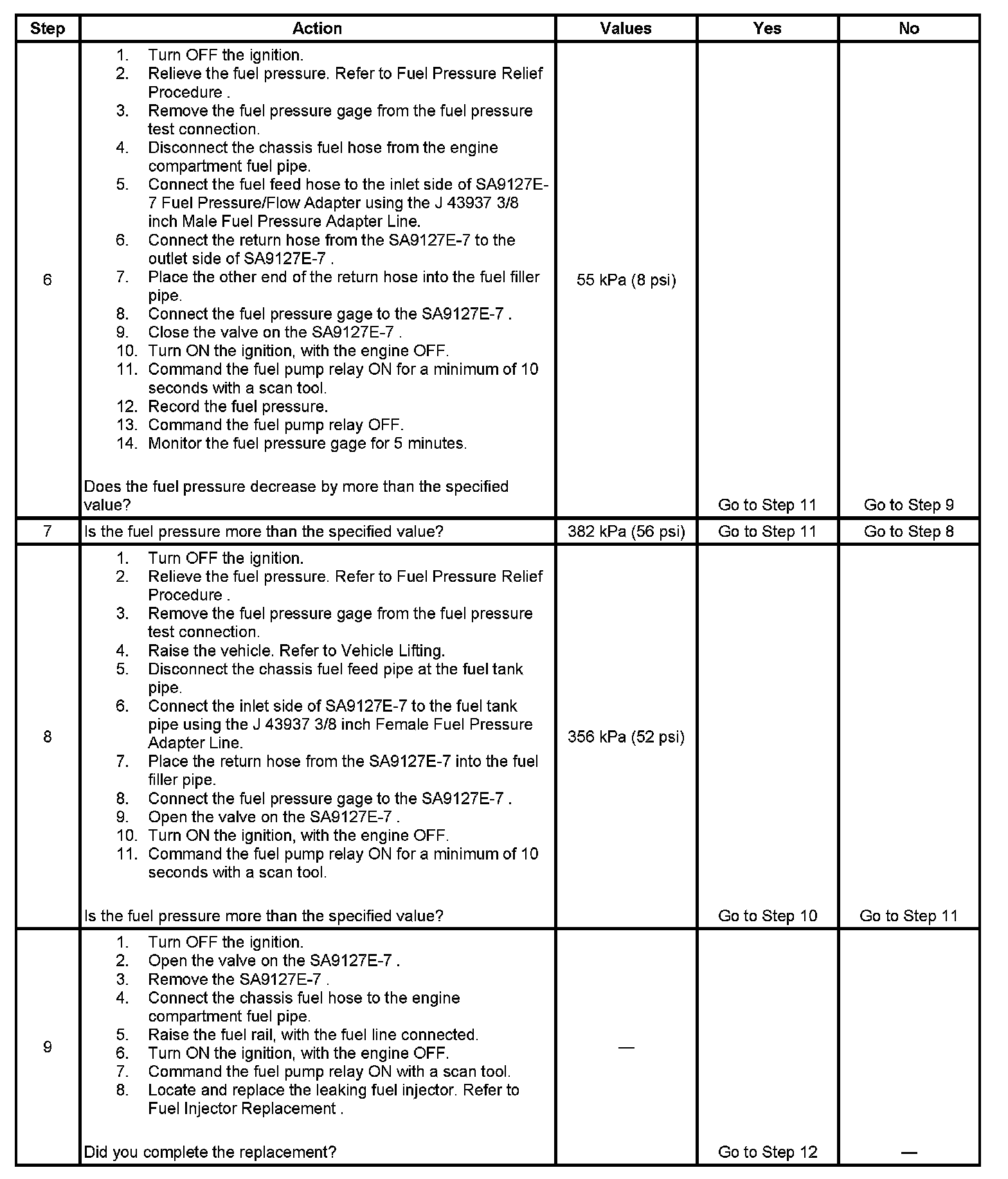 7. This step tests the operation of the fuel pressure regulator. If the fuel pressure exceeds the specified value, the fuel pressure regulator is faulty.