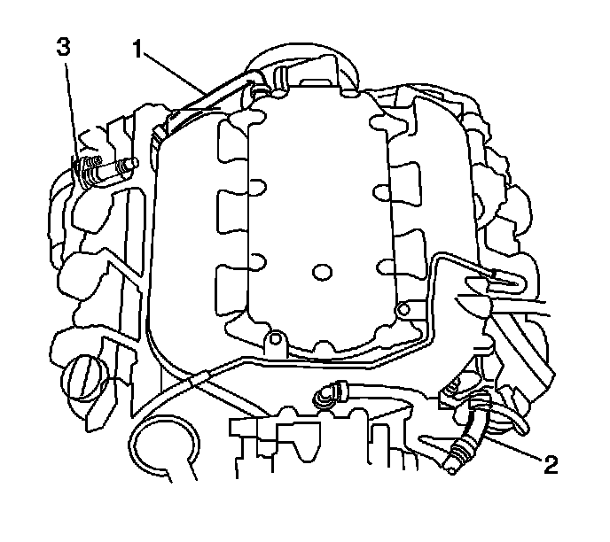 1. Inspect the positive crankcase ventilation (PCV) valve (3), the hoses (1, 2), and all connections for leaks or restrictions. Repair as necessary.