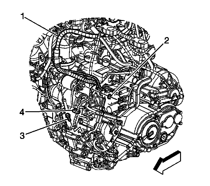 4. Disconnect the negative battery cable from the transmission bracket (3).