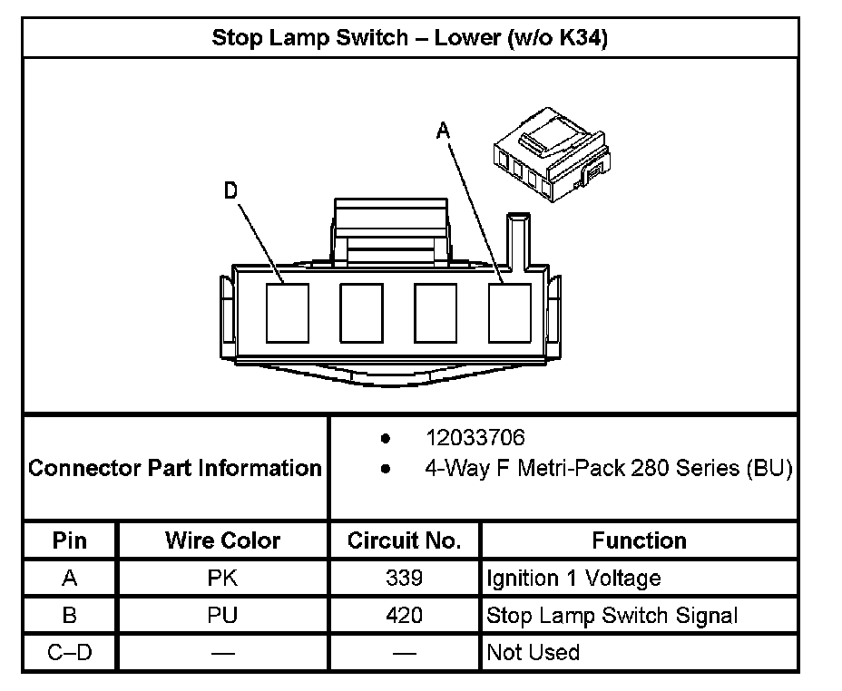Stop Lamp Switch - Lower (With RPO Code K34):