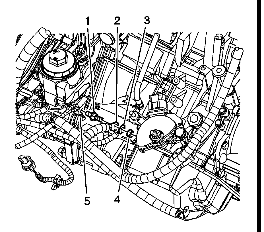 3. Remove the engine harness ground terminal (3) from the stud (1).