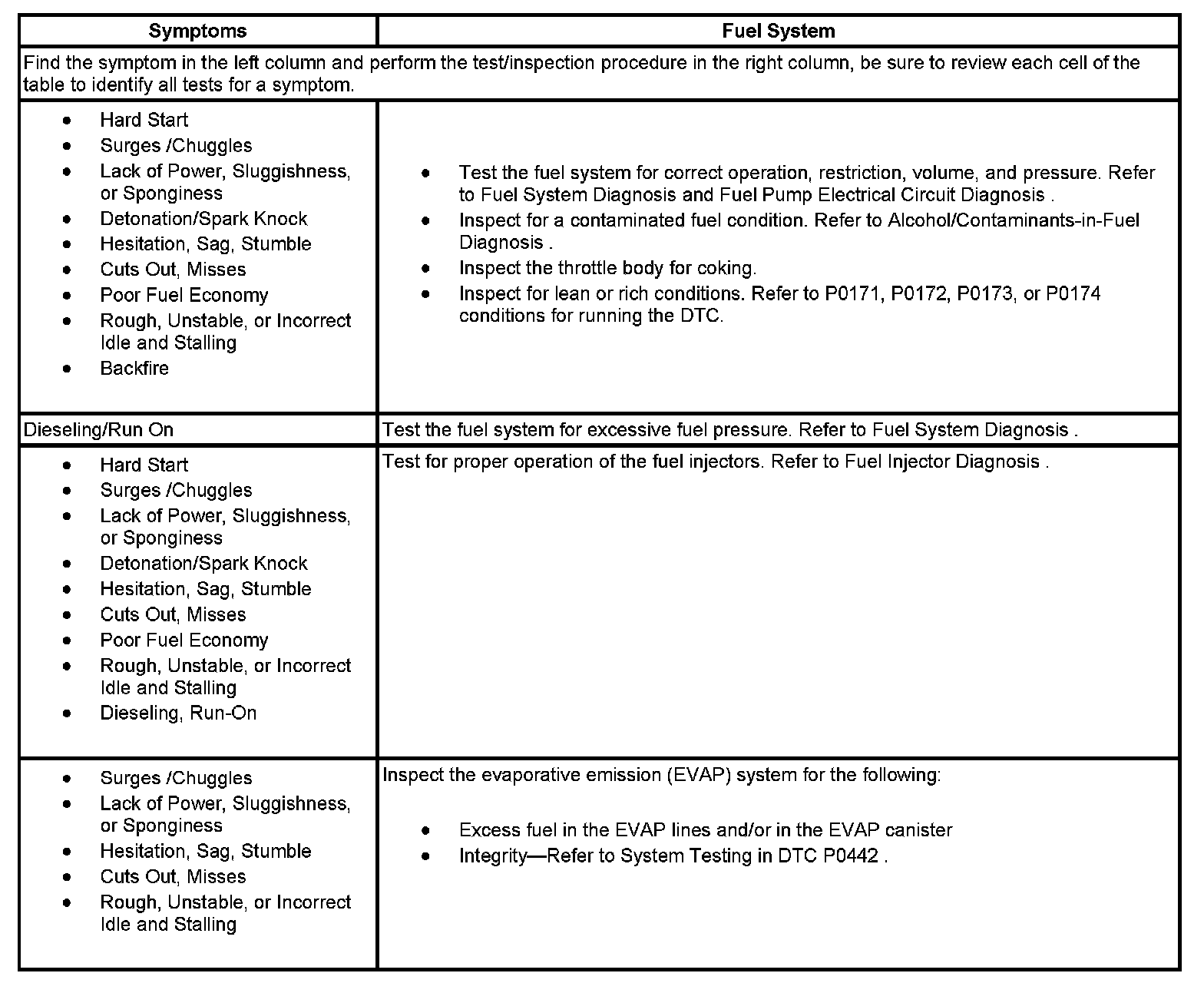 Symptoms - Fuel System: