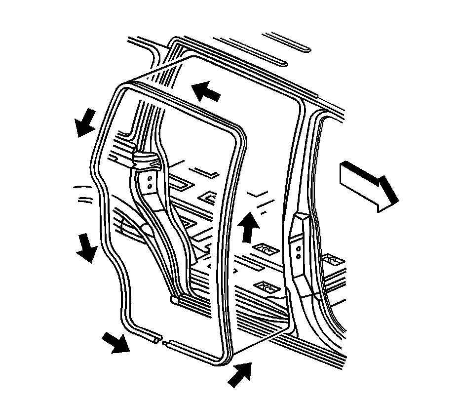 1. Install the sliding door opening weatherstrip to the sliding door pinchweld flange.