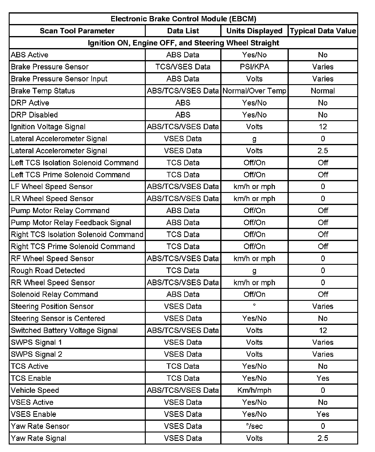 Scan Tool Data List