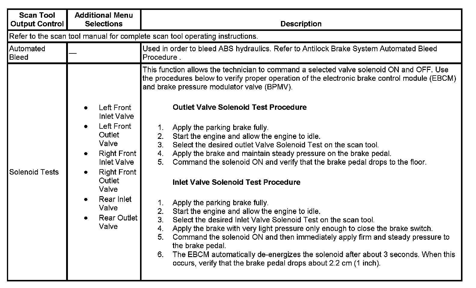 Scan Tool Output Controls: