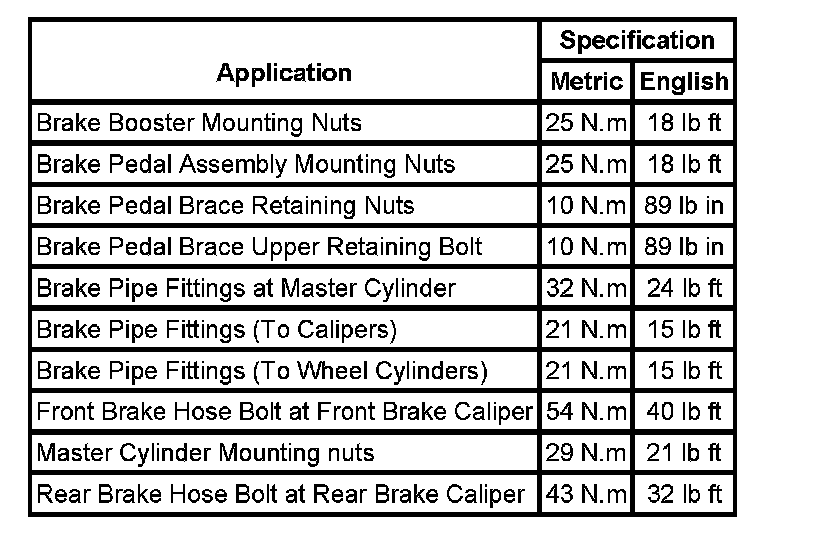 Fastener Tightening Specifications: