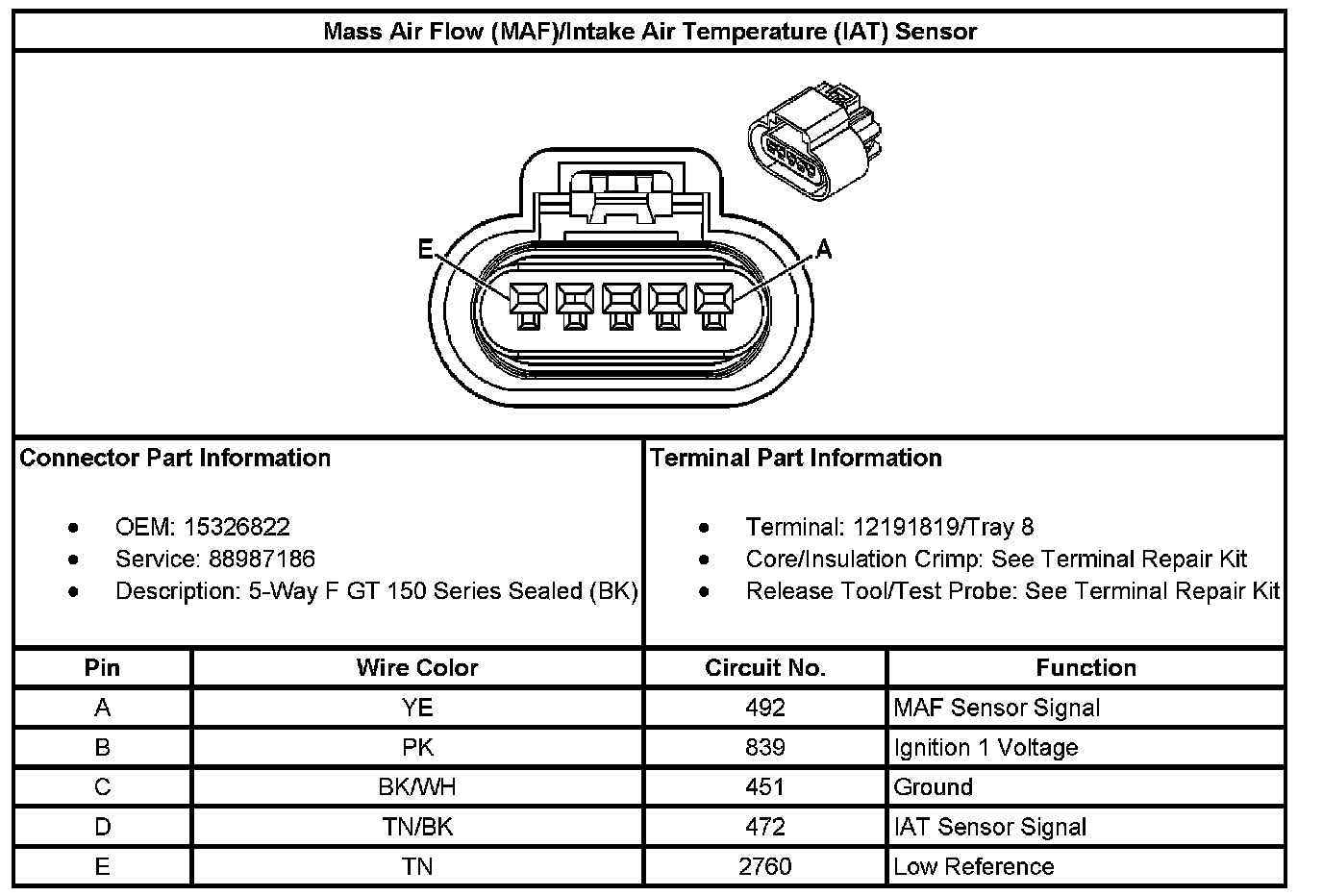 Mass Air Flow (MAF)/Intake Air Temperature (IAT) Sensor: