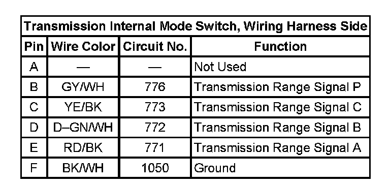 Transmission Internal Mode Switch, Wiring Harness Side: