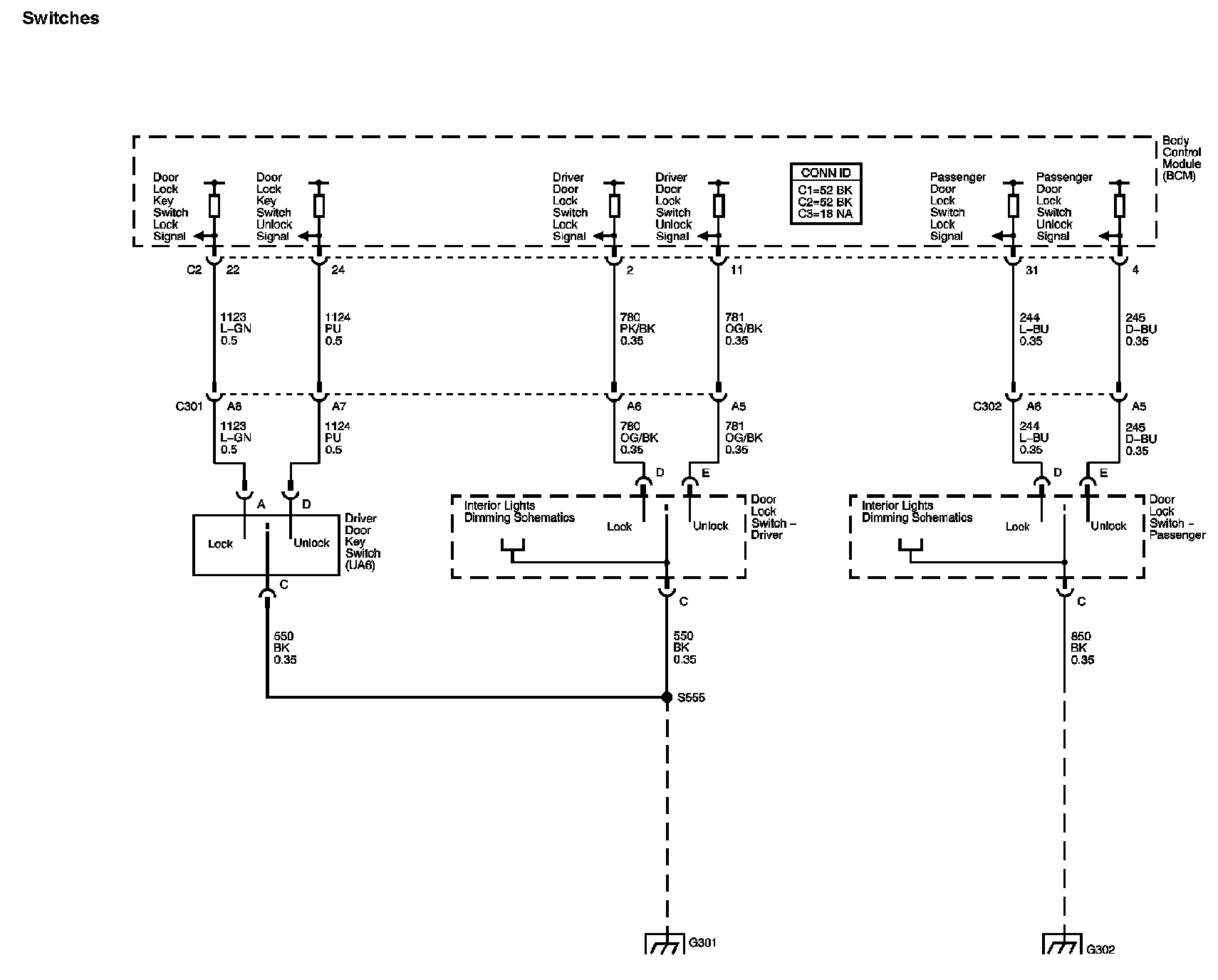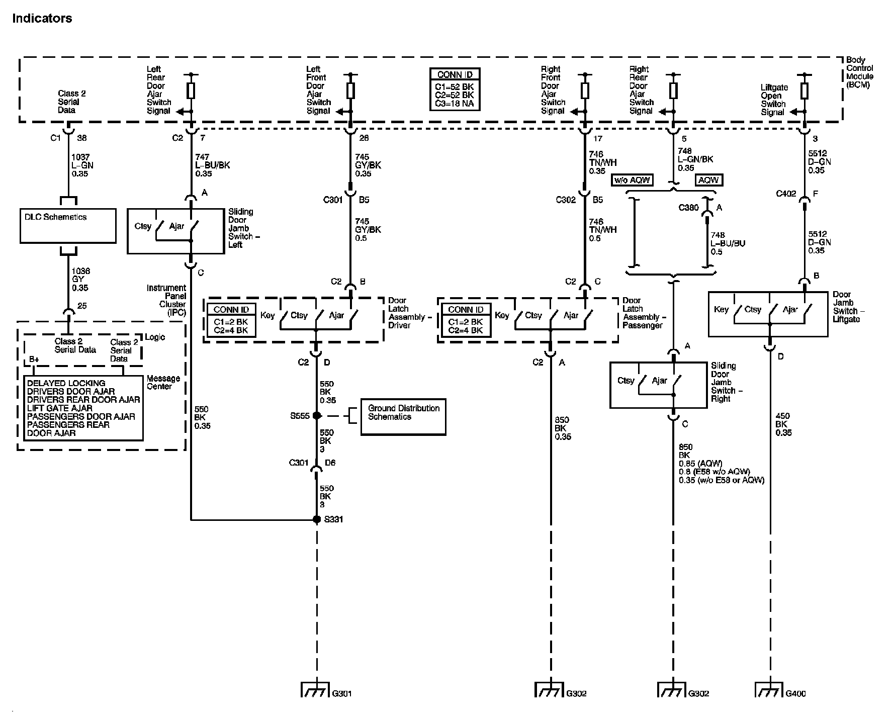 Locations: The locations for the Connectors, Grounds, Splices, and Grommets shown within these diagrams can be found via their numbers at Vehicle Locations. Locations