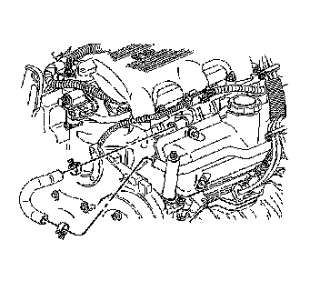 8. Disconnect the heater inlet pipe with heater hose from the lower intake manifold and reposition.