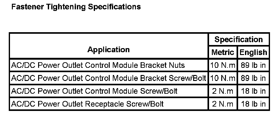 Auxiliary Power Outlet: Specifications