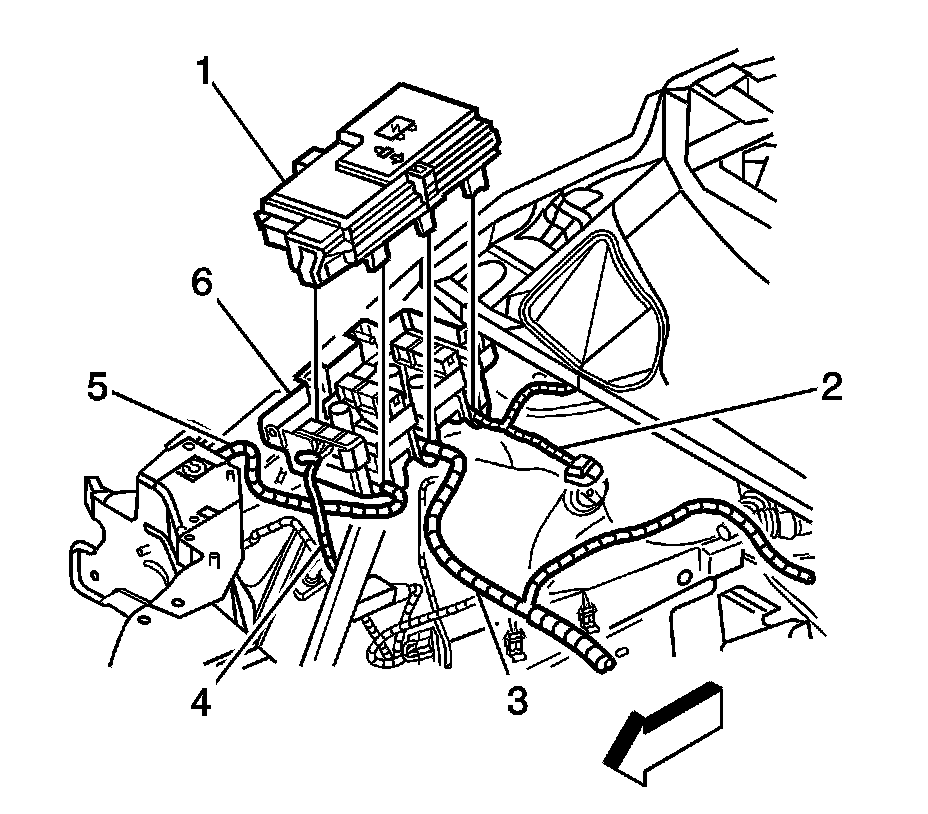 6. Install the underhood electrical center cover (1) to the electrical center base (6).