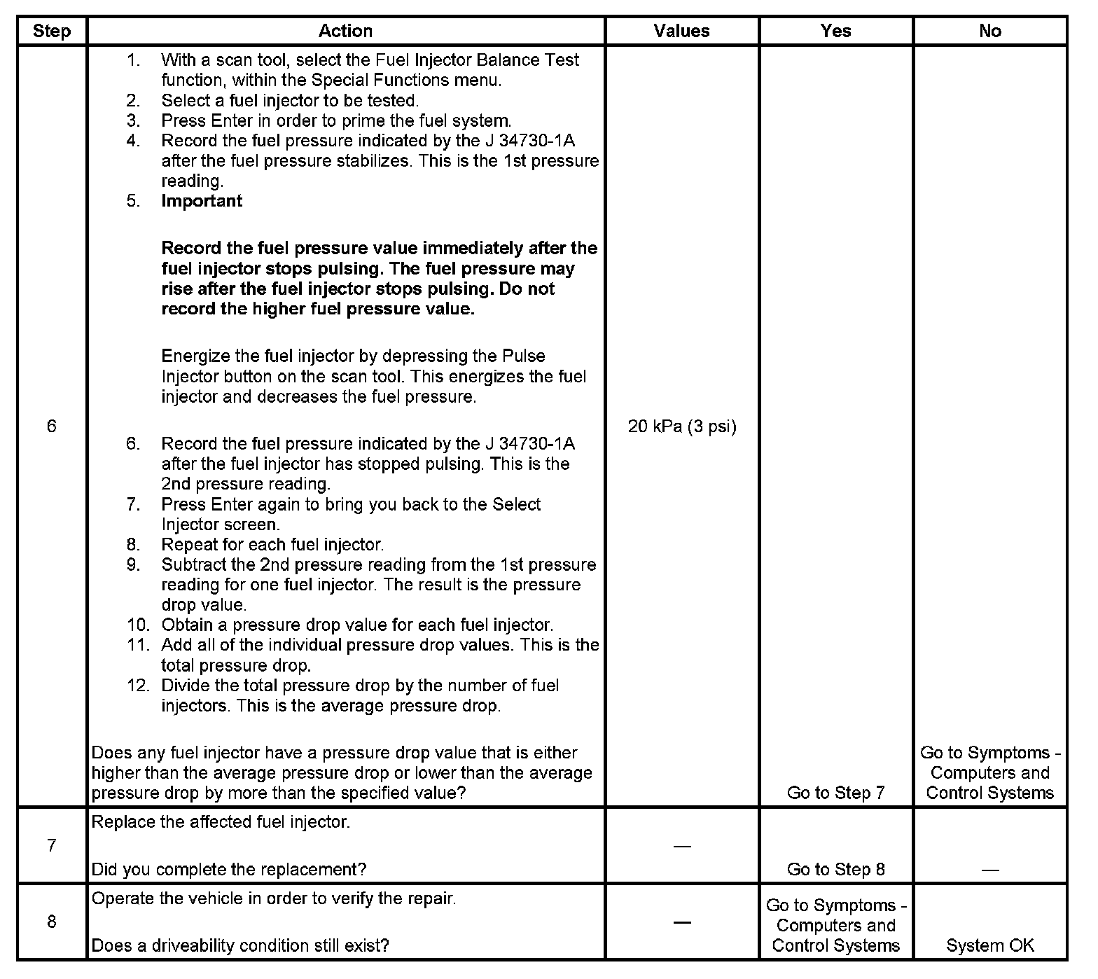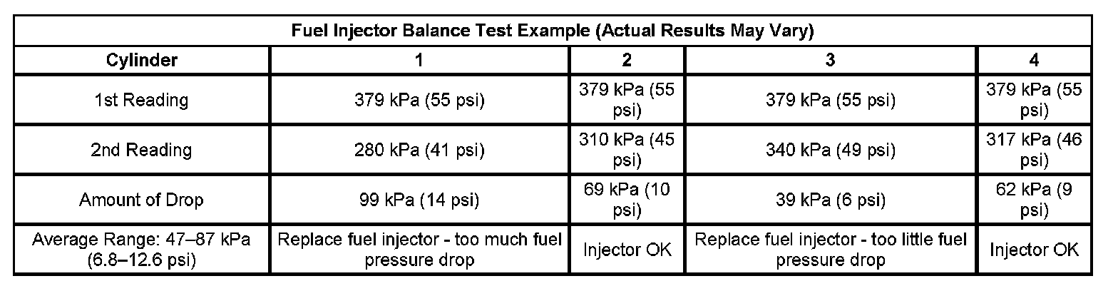 Fuel Injector Balance Test Example (Actual Results May Vary):