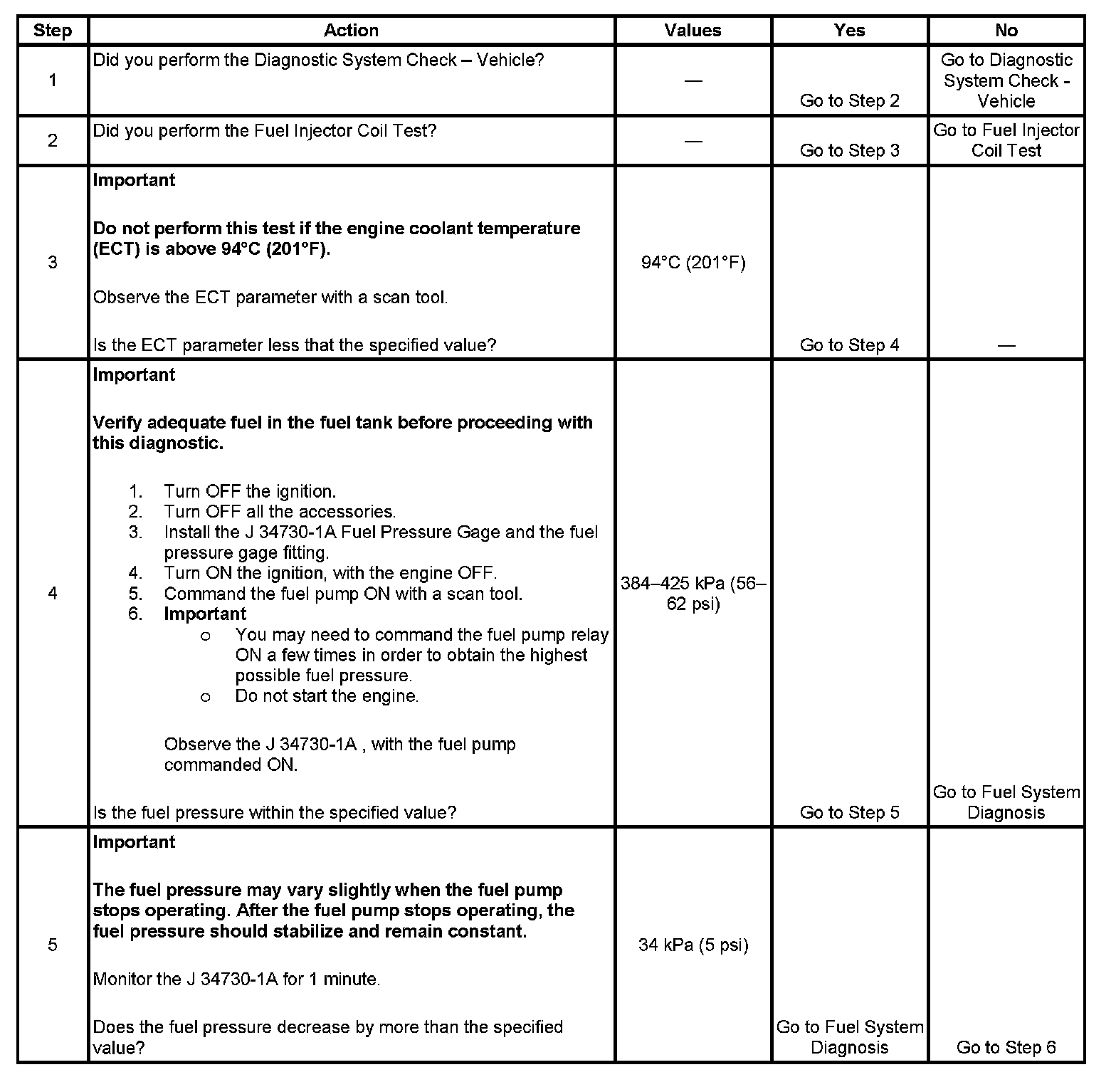 3. The engine coolant temperature (ECT) must be below the operating temperature in order to avoid irregular fuel pressure readings due to hot soak fuel boiling.