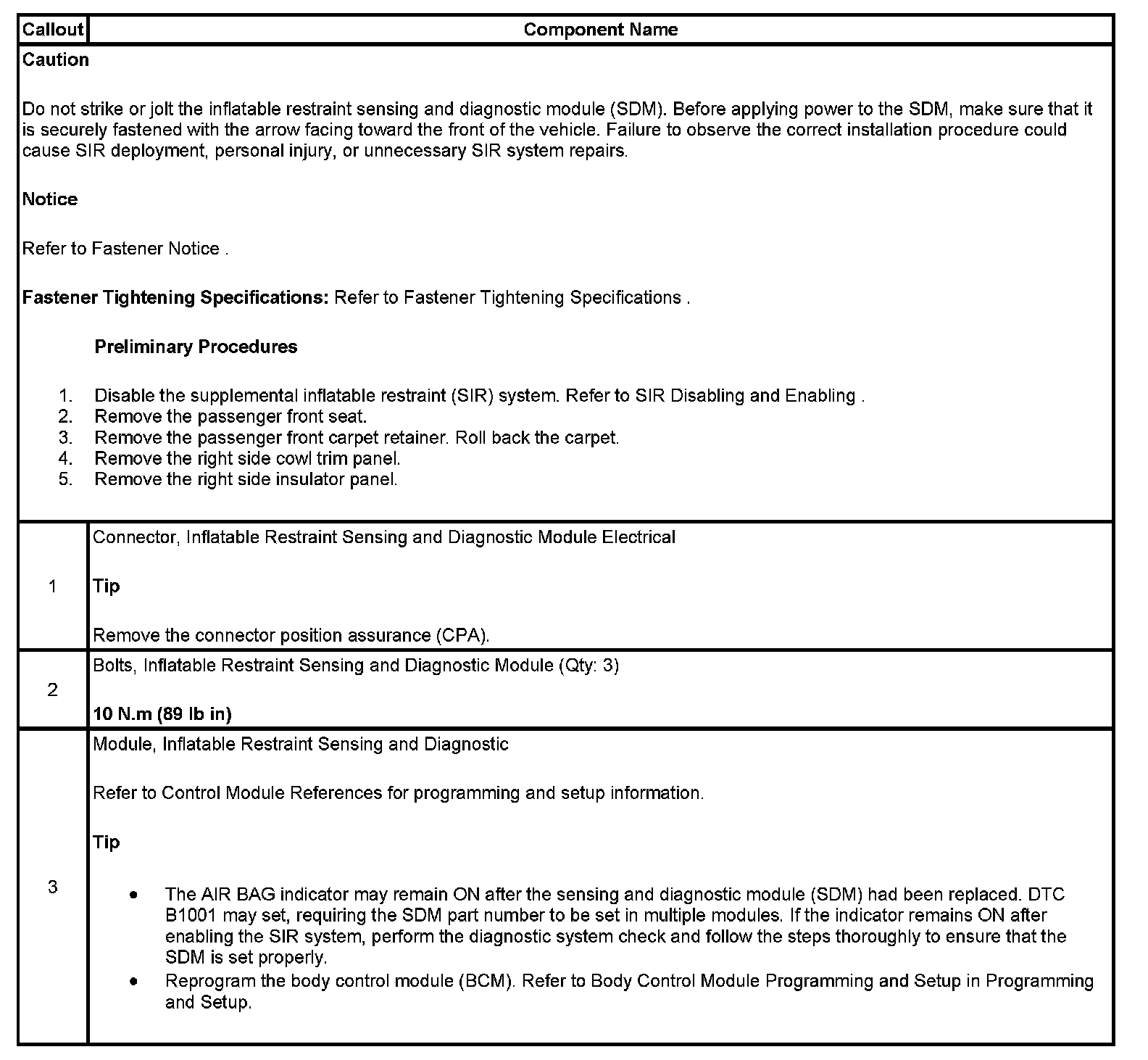INFLATABLE RESTRAINT SENSING AND DIAGNOSTIC MODULE REPLACEMENT