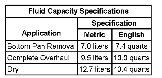 Fluid Capacity Specifications: