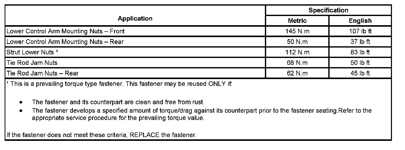 Fastener Tightening Specifications