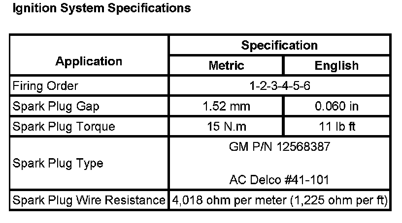 Ignition System Specifications: