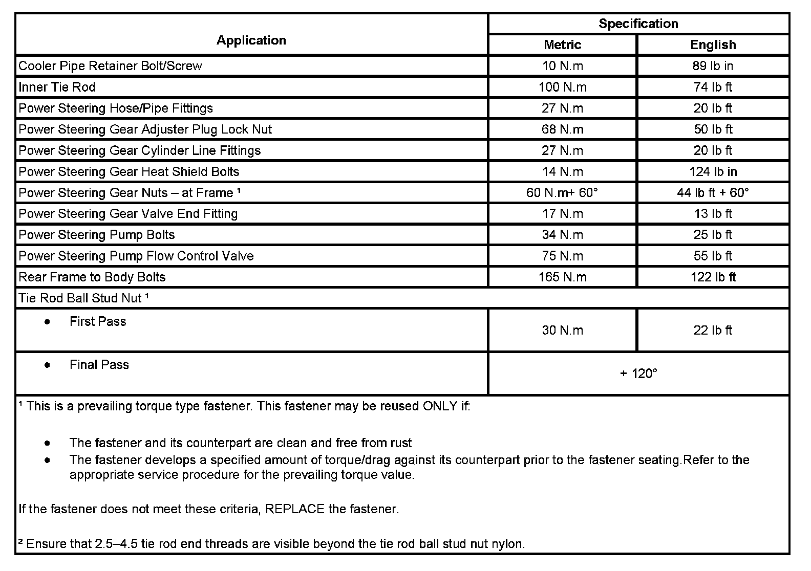 Fastener Tightening Specifications: