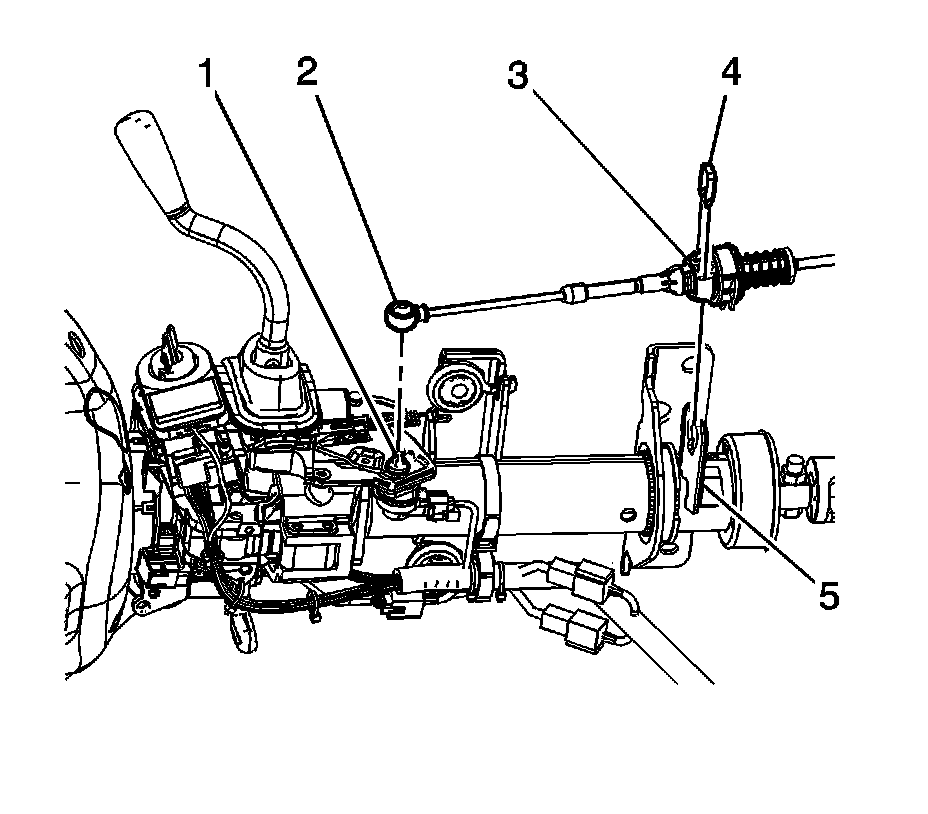 5. Install the transaxle shift cable (3) to the shift cable bracket (5).