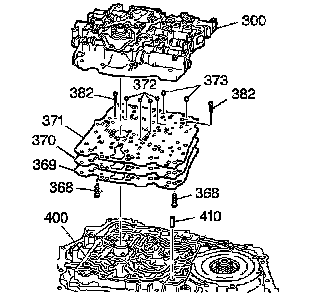 4. Remove the valve body (300) while keeping the spacer plate (370) with the transaxle.