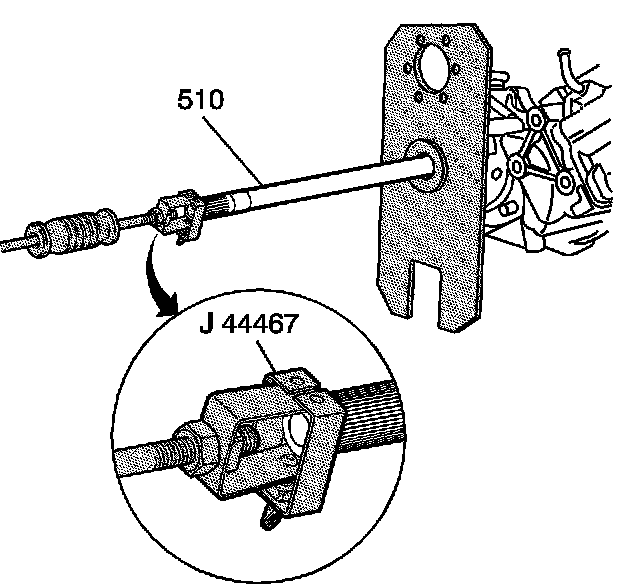 20. Install the J 44467 into the snap ring groove on the output shaft (510) and tighten securely.