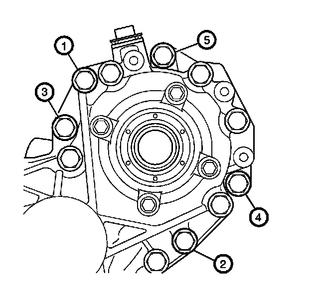 15. Remove the transfer case bolts (1-5).