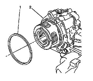 23. Remove the transfer case seal (1) from the transfer case (2).