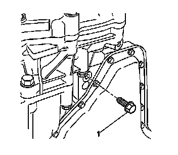 11. Install the transfer case lower brace to transaxle bolt (1).