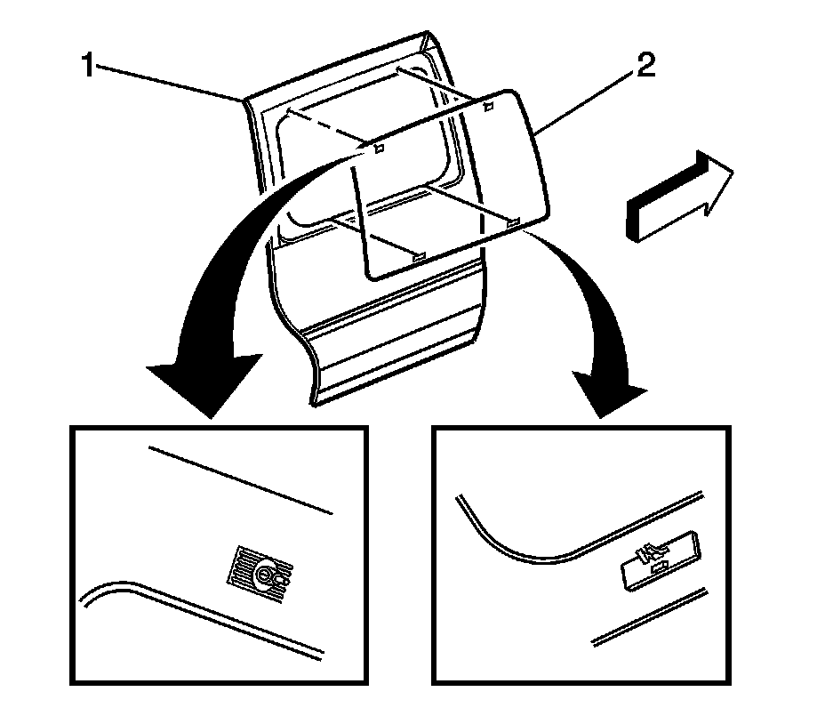 1. Install the stationary window (2) into the opening. Refer to Urethane Adhesive Installation of Bodyside Stationary Windows (Urethane Adhesive Installation of Bodyside Stationary Windows) .