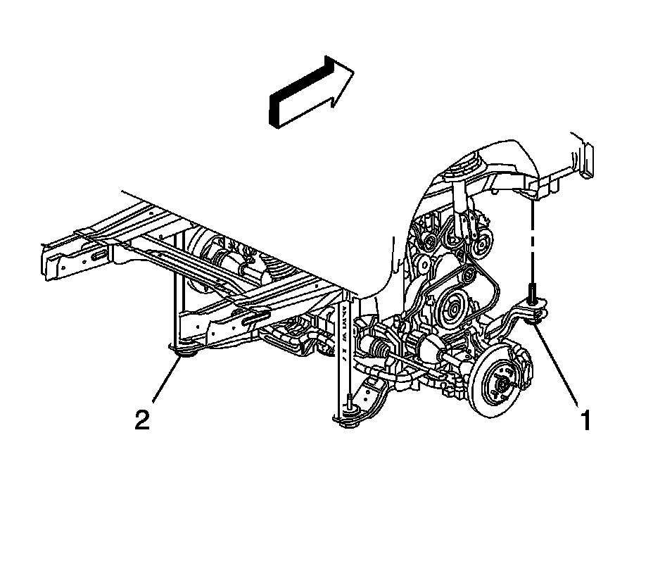 59. Install the engine harness ground nuts (1, 2) to the transaxle studs.