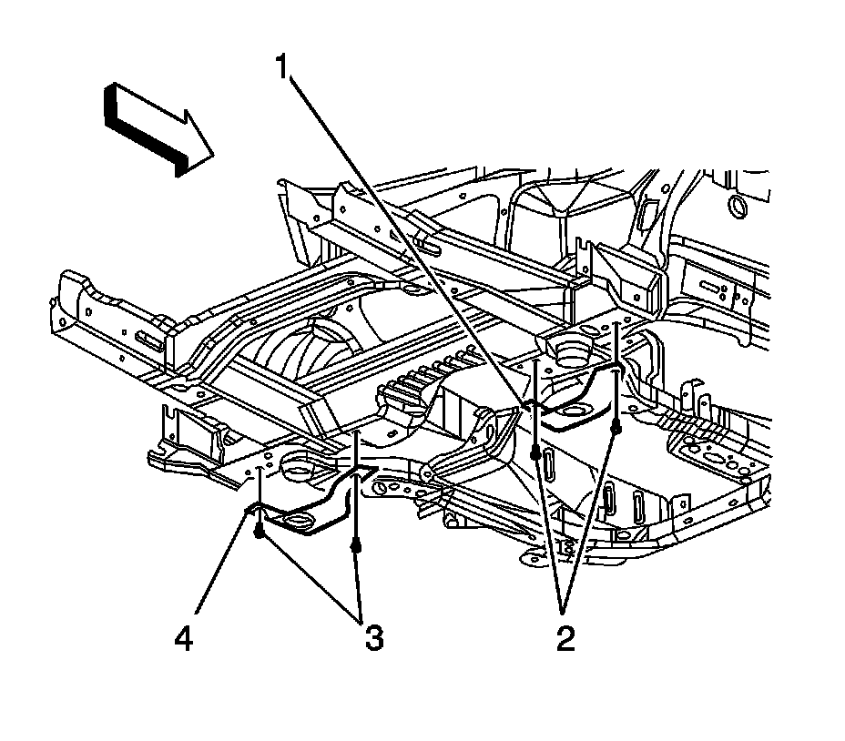 45. Install the exhaust crossover pipe shield (2) and bolts (1).