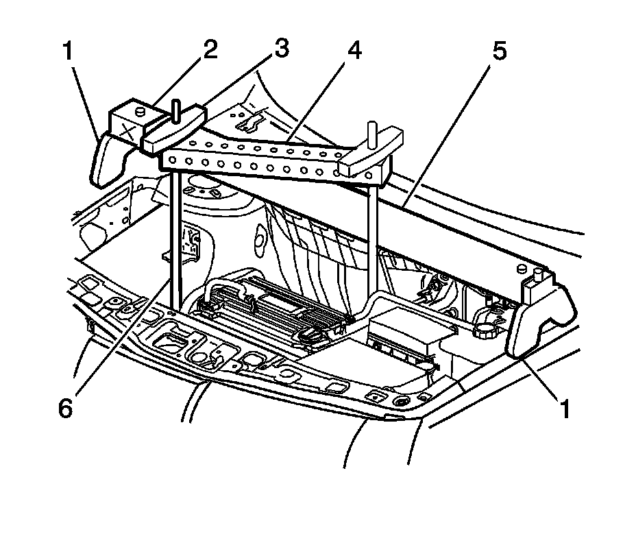 4. Install the J 43405 (5) to engine support crossbar.