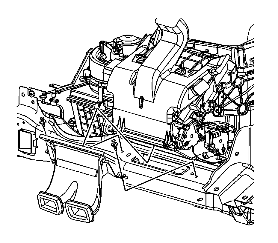 IMPORTANT: Make sure the plastic molded in bracket at the center of the HVAC module is forward of the cross car beam during installation.
